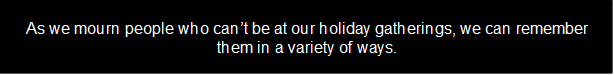 At Thanksgiving this year, our family created a meaningful moment to remember our beloveds who have died. We shared stories — it felt like a prayer that blessed us all. Here are some ideas you can try at your holiday table: