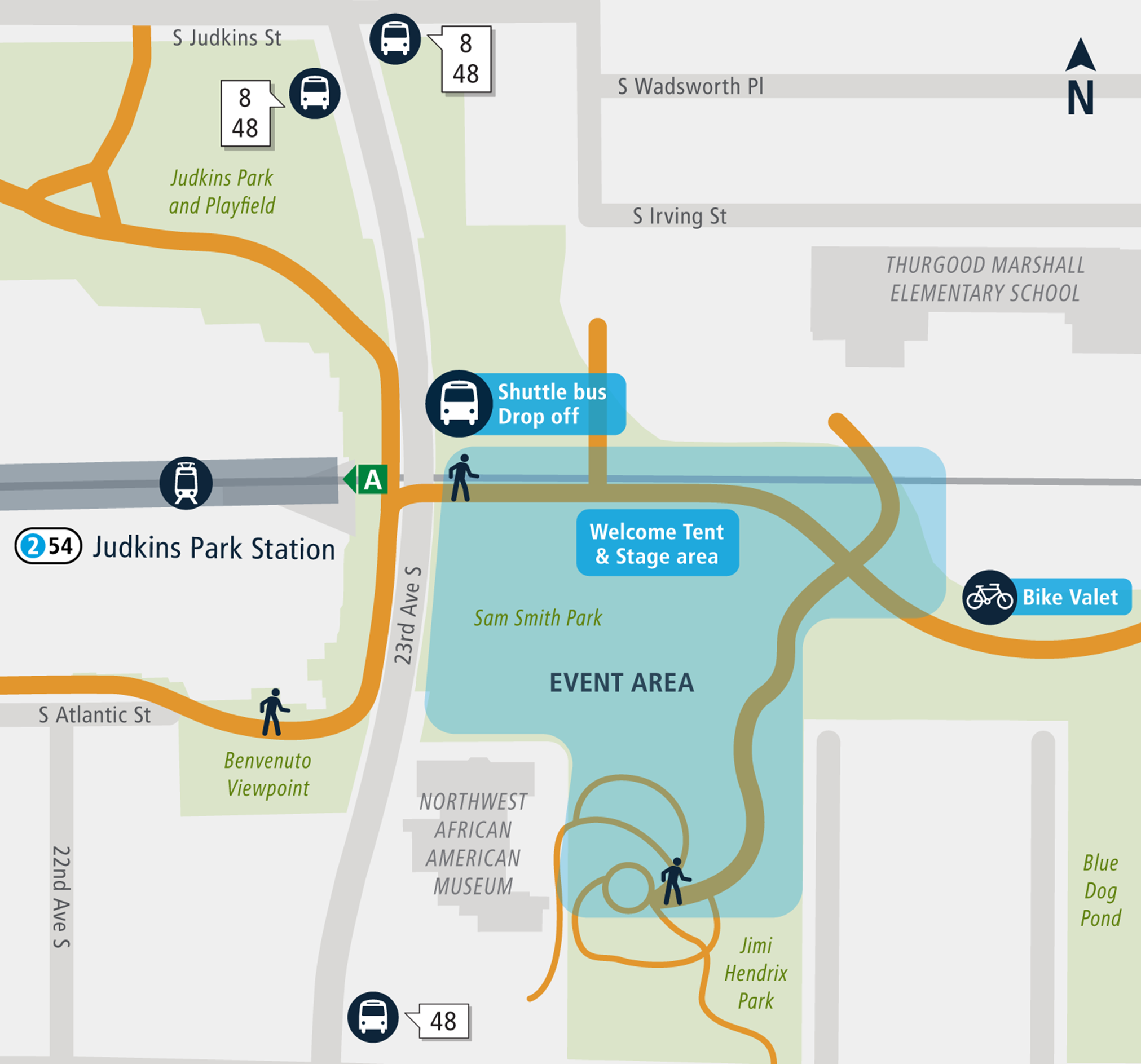 Rainier Avenue South. All passengers will arrive at Sam Smith Park on 23rd