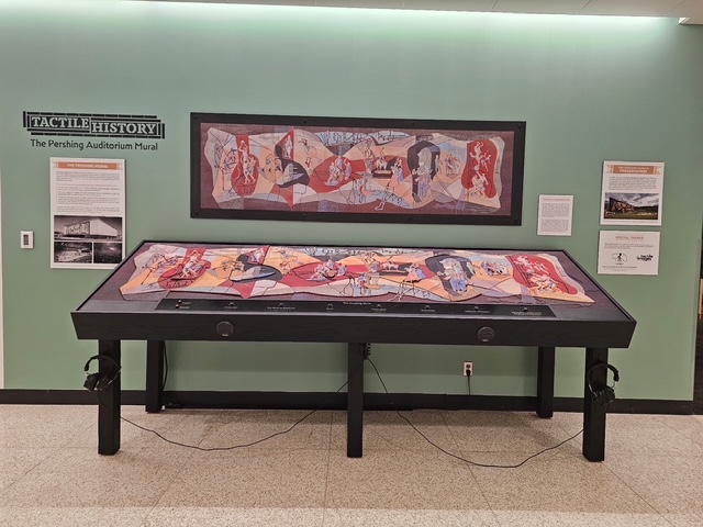 In 2023, Liz Shea-McCoy, Project Chair of the Pershing Mural Historic Preservation Project, received a call from Barbara Loos, a longtime member and leader within the National Federation of the Blind. Barbara expressed a desire to “see” the Pershing Mural through touch.